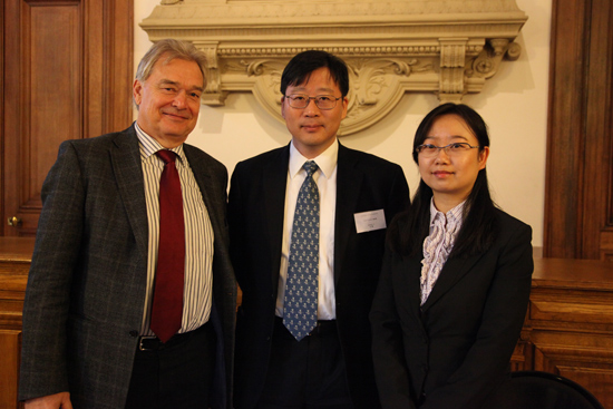中國科院科技政(xi角n)與管理科研究所所長王鞨(中)、歐盟環嚌`司司長卡爾·法肯貝格(左)踇受人民網強國蕆壇記者專訪(周鵬 攝)