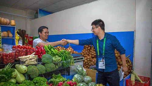 分發(fā)完盒飯,劉會(huì)彬說(shuō)一會(huì)要去菜市場(chǎng)采購(gòu)一次食材,邀請(qǐng)我們一同前往,小編當(dāng)然欣然應(yīng)邀。途中,又開(kāi)心地交流起來(lái)。