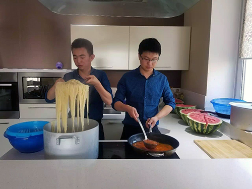 于是,趕緊從中國(guó)館運(yùn)營(yíng)總監(jiān)劉芳那里了解到關(guān)于大廚的一些信息。劉芳總監(jiān)介紹到,青島世園集團(tuán)從中標(biāo)本屆阿斯塔納世博會(huì)運(yùn)營(yíng)商開(kāi)始,就在琢磨如何做好志愿者的保障?紤]到志愿者國(guó)外生活經(jīng)驗(yàn)不足,加上中外飲食差異較大,便決心提供良好的餐飲保障,讓志愿者展現(xiàn)最良好的精神狀態(tài)和工作狀態(tài)。隨后,從青島世園集團(tuán)旗下的五星級(jí)酒店——世園寒軒酒店精心挑選兩名廚藝精湛的廚師駐守在阿斯塔納,專門(mén)保障志愿者的飲食。來(lái)哈之前就對(duì)兩位廚師進(jìn)行過(guò)多次業(yè)務(wù)培訓(xùn),來(lái)哈之后根據(jù)當(dāng)?shù)貙?shí)際情況又制定采購(gòu)標(biāo)準(zhǔn)等一系列管理制度,并積極關(guān)注志愿者需求,不斷改進(jìn)飲食,確保切實(shí)為志愿者們提供最可口、最可心的飯菜,志愿者們對(duì)兩位大廚的廚藝可是贊不絕口。