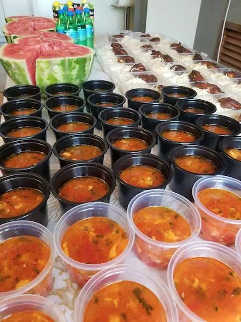 原來(lái)兩位大廚沒(méi)有任何幫手,從采購(gòu)到洗菜、做飯、分飯?jiān)俚剿惋垺⑾聪此⑺⑷克麄,這可比在酒店只當(dāng)后廚辛苦多了。當(dāng)?shù)貤l件有限,沒(méi)有國(guó)內(nèi)的明火燃?xì),阿斯塔納當(dāng)?shù)貜N房只有電磁爐,受熱較慢且不均勻,對(duì)于廚藝和耐力都是不小的挑戰(zhàn)。剛開(kāi)始時(shí),沒(méi)采購(gòu)到食堂用大型電飯鍋,每天只能用普通家庭電飯鍋一鍋一鍋蒸,每天12鍋,從早忙到晚。從5月底來(lái)到阿斯塔納將近3個(gè)月,兩位大廚沒(méi)有完整休息過(guò)一天。