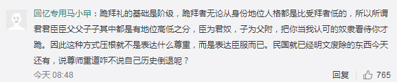 有網(wǎng)友批評活動(dòng)作用:“跪拜禮是封建階級文化產(chǎn)物,抹殺了獨(dú)立人格?”